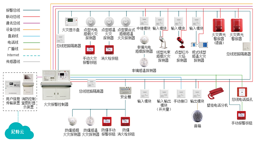 尼特火灾自动报警系统分为“二线制”解决方案和“四线制”解决方案